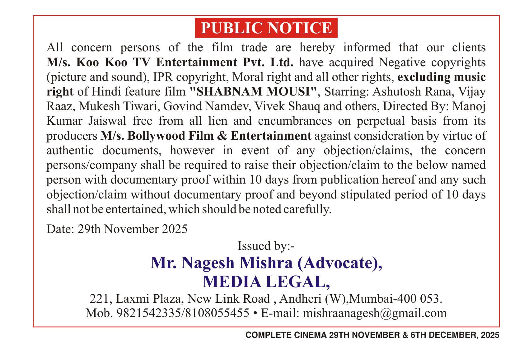 PUBLIC NOTICES