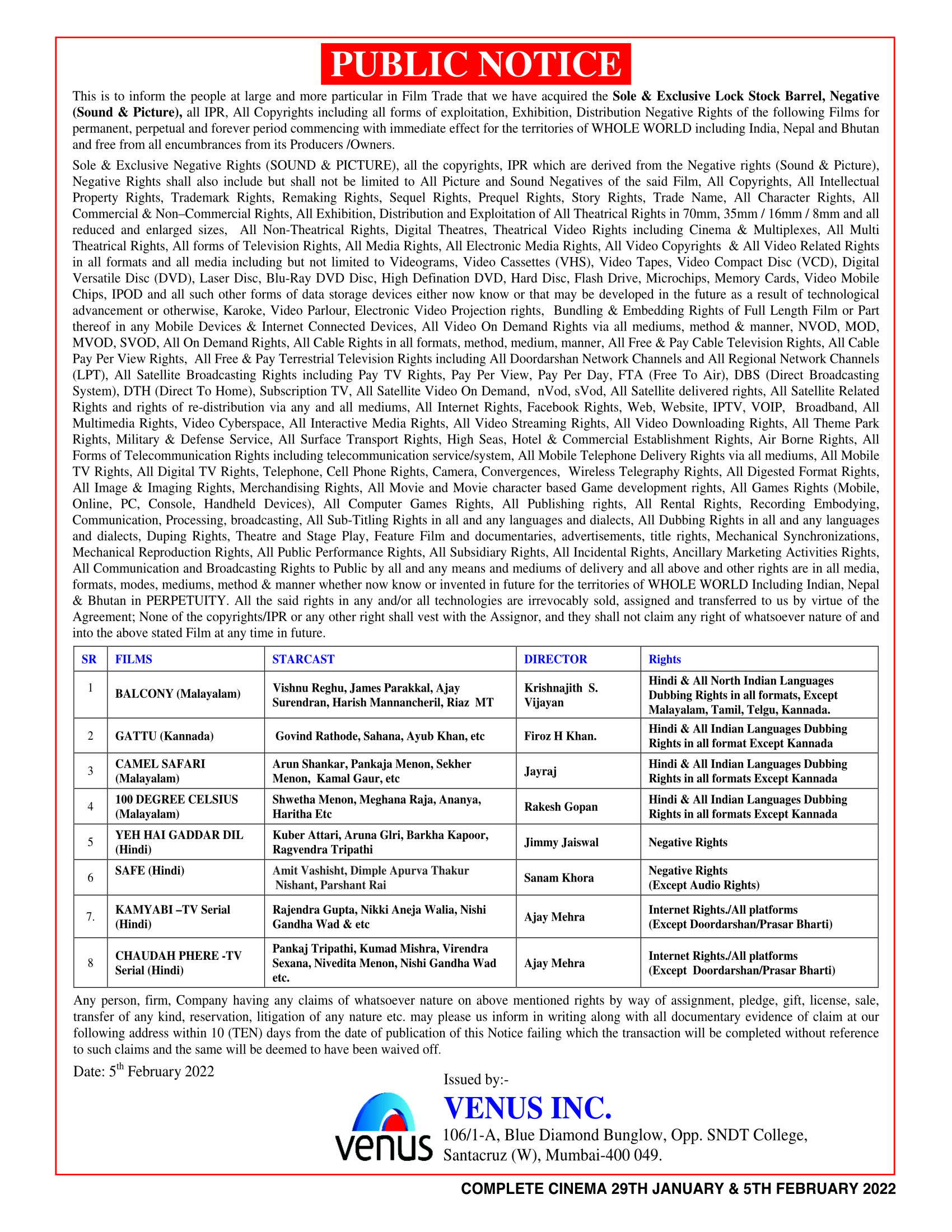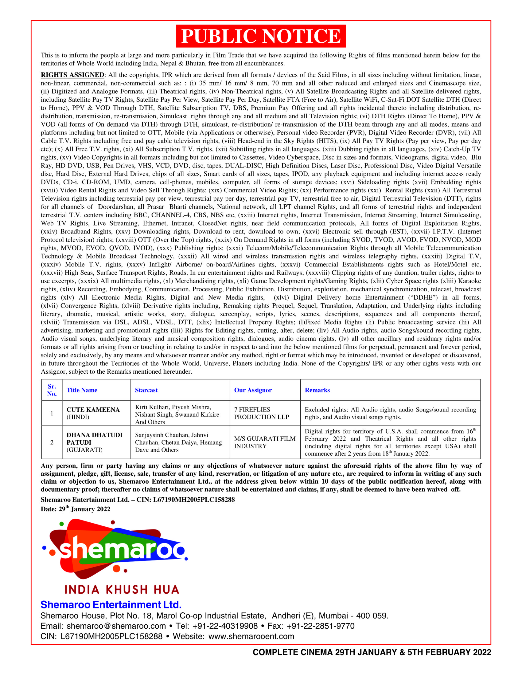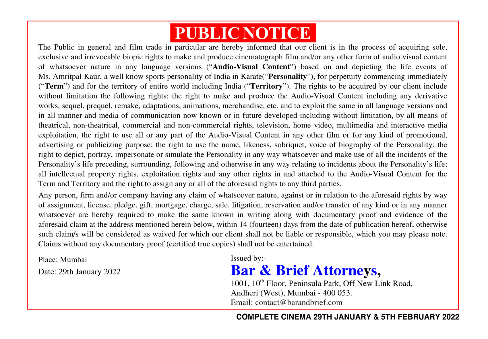PUBLIC NOTICES Period 29th January And 5th February 2022 View notices Period 15th And 22nd January, 2022