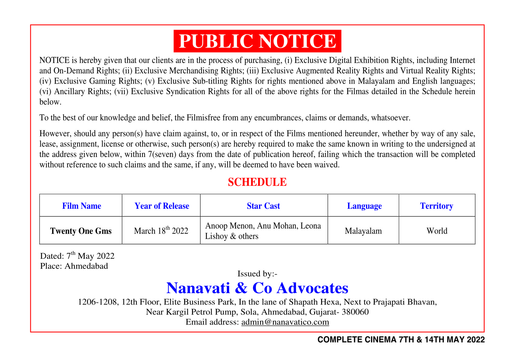 Period 7th And 14th May 2022
