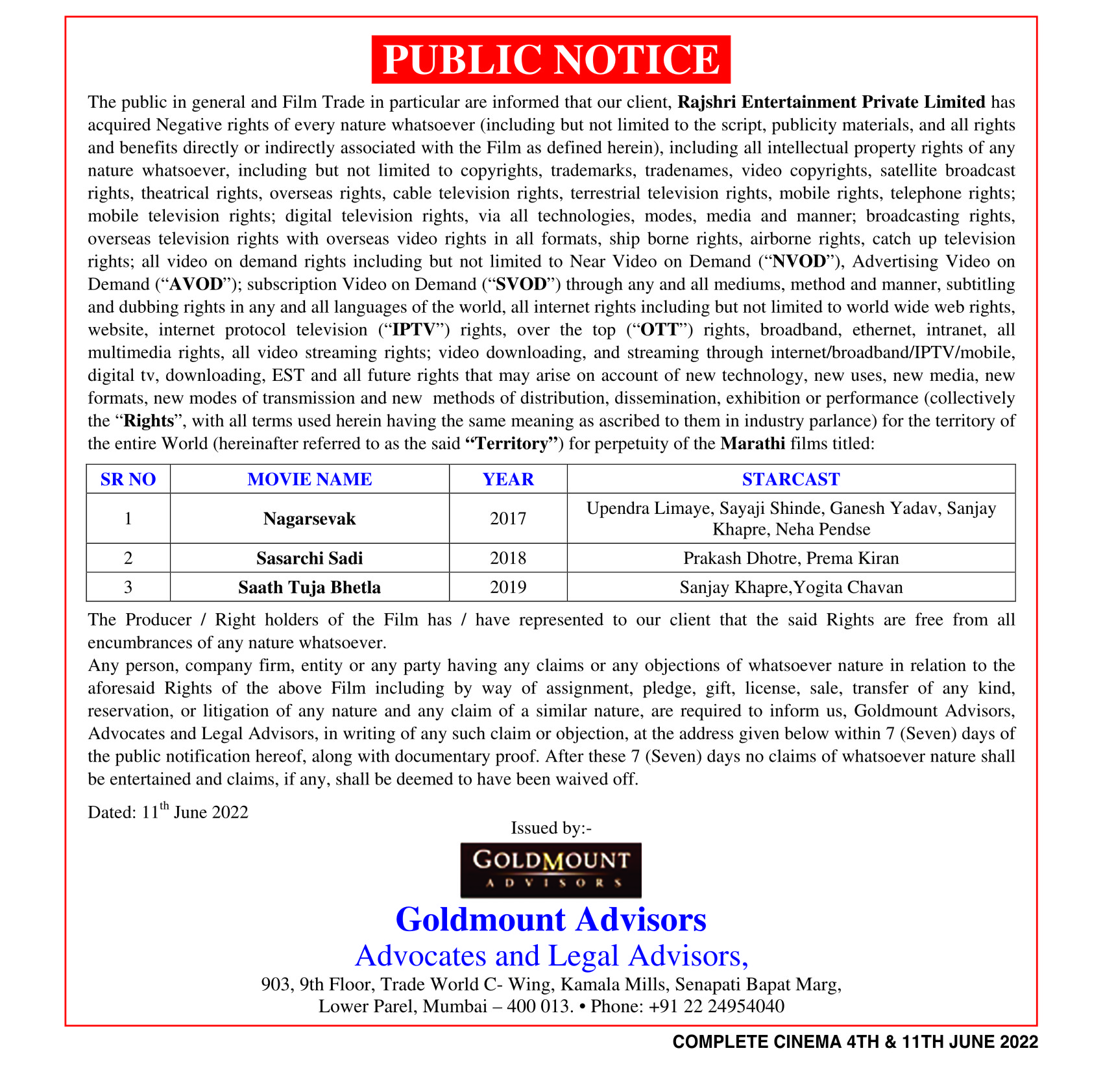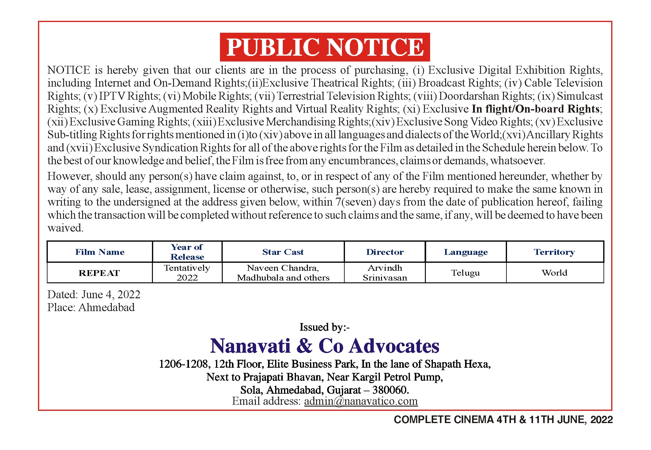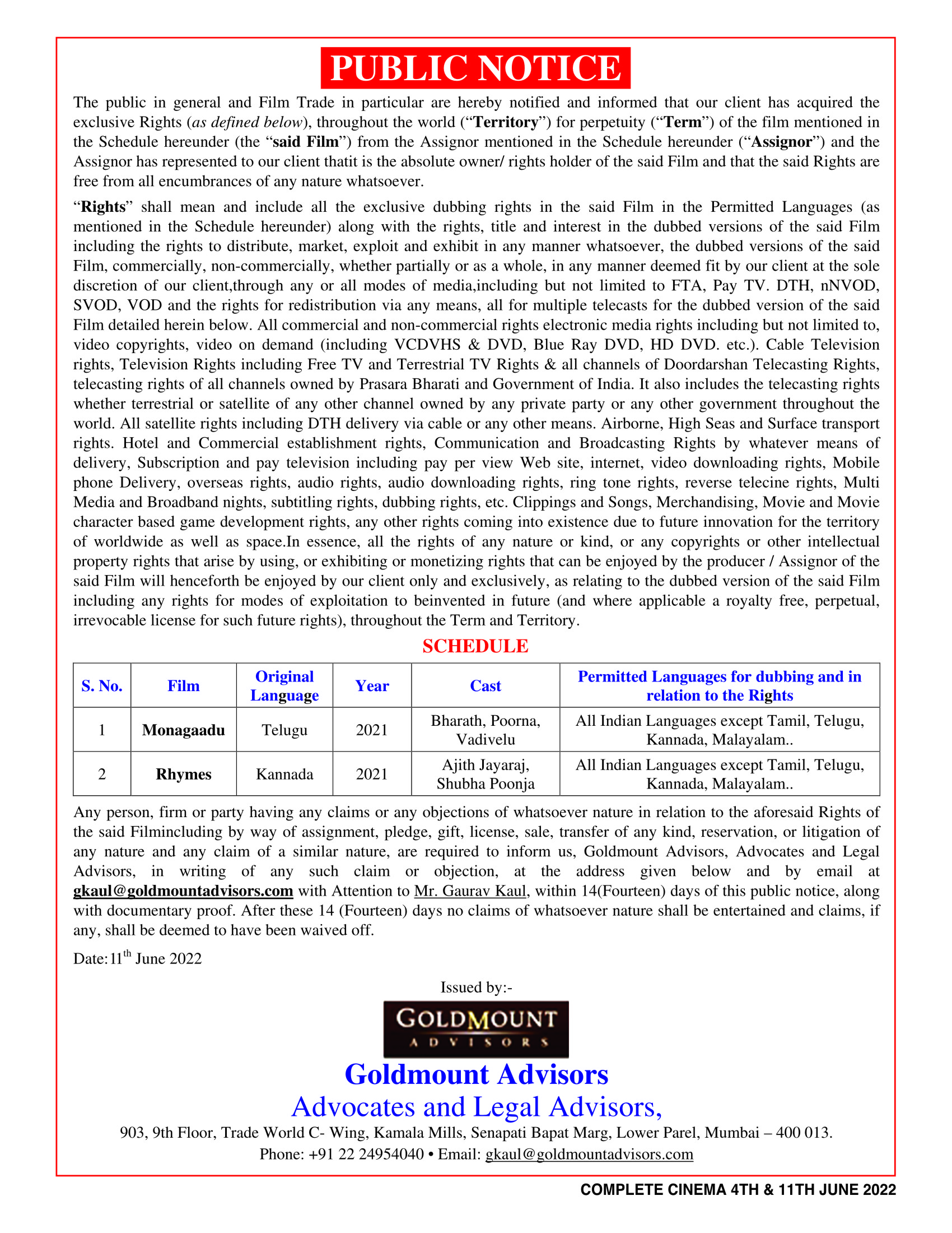 Period 4th And 11th June 2022